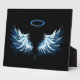Blue Glows Angel Wings auf schwarzem Hintergrund Fotoplatte