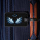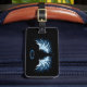 Blue Glows Angel Wings auf schwarzem Hintergrund Gepäckanhänger