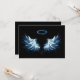 Blue Glows Angel Wings auf schwarzem Hintergrund Karte