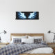 Blue Glows Angel Wings auf schwarzem Hintergrund Leinwanddruck