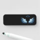Blue Glows Angel Wings auf schwarzem Hintergrund Namensschild