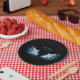 Blue Glows Angel Wings auf schwarzem Hintergrund Pappteller