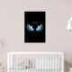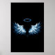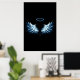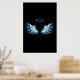 Blue Glows Angel Wings auf schwarzem Hintergrund Poster