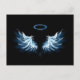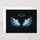 Blue Glows Angel Wings auf schwarzem Hintergrund Postkarte