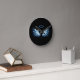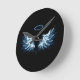 Blue Glows Angel Wings auf schwarzem Hintergrund Runde Wanduhr