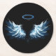 Blue Glows Angel Wings auf schwarzem Hintergrund Runder Pappuntersetzer