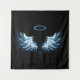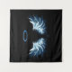 Blue Glows Angel Wings auf schwarzem Hintergrund Wandteppich