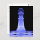 Glühendes Schachstück auf einem Schachbrett. Blau, Glanz, kng, Brettspiel.