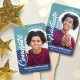 Bleibe cool und unterstütze deinen Lieblingsgrad, wenn sie ihr Diplom erhalten, mit diesem Keepake 2 Foto Handfan. Auf der Vorderseite, fett, grafisch, weiß handschriftlich "Glückwunschs" Schrift Kalligraphie, weiß und marinebasiert Sans Serifentypografie und ein Foto Ihrer Wahl in einem Bogen-Overlay ein staubiges türkis und marineblau Hintergrund. Auf der Rückseite, weiße handgeschriebene "Graduate" Skript-Kalligraphie und sans Serif Typografie, zusammen mit einem zusätzlichen benutzerdefinierten Foto, Overlay Türkis und Marine. Personalisieren Sie den benutzerdefinierten Text mit dem Namen, der Schule und dem Unterrichtsjahr Ihres Abschlusses. Matching lädt, Dankeschön-Karten, Adressetiketten, Aufkleber und andere Abschluss-Goodies sind auch in dieser trendigen und stilvollen Kollektion erhältlich. Garantiert, um die gepflegten Erinnerungen ihres besonderen Anlasses zu erhalten! Ersetzen Sie einfach die 2 Sample-Fotos durch eigene, geben Sie den Namen, die Schule und das Klassenjahr Ihres Abschlusses ein, und Sie können diesen Keepake Abschluss Handfan ganz einfach personalisieren. Bitte schicken Sie mir eine Nachricht mit Fragen oder Wünschen.