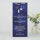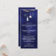 Navy Hintergrund, braunes Holz, blaue und weiße Weihnachtsdekoration. Die blaue Hintergrundfarbe ist ungleichmäßig. Blau-weiße Sterne und eine blaue Gnome Frau. Personalisieren Sie Ihr Menü und fügen Sie es hinzu.