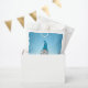Niedliches Gnomen in blauen Anzügen mit Schneeflocken im blauen Hintergrund
