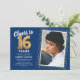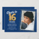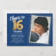Feiern Sie den großen Meilenstein der sechzehnten Geburtstagsfeier mit unseren eleganten Einladungen. Diese Einladungen mit einem individuell gestaltbaren, blauen Hintergrund, einem persönlichen Foto und goldenen Akzenten werden Ihnen einen bleibenden Eindruck verließe. Die goldenen Helium-Ballondetails fügen eine Touch Zauber hinzu, während die moderne Textvorlage zum 16. Geburtstag leicht zu personalisieren ist. Denn Stil hat keine Altersgrenze!