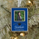 Dieses königsblaue Sondergeschenk für hochrangige Abschluss - Weihnachtsschmuck - zeigt eine schicke Typografie aus Weiß und Gold unter dem Namen High School oder Uni für die Klasse von 2025. Passen Sie mit Ihrem geschlossen Jahr unter Ihrem Foto für ein großartiges personalisiertes Graduiertenfoto präsent.