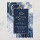Blue Gold Agate 50. Geburtstag Einladung. Feiern Sie eine stilvolle 50. Geburtstagsparty mit diesem eleganten, modernen Design. Mit atemberaubenden Blau- und Goldtönen, Marmorgeodmustern und Aquarellfarben-Alkoholtupfer-Details bietet es eine raffinierte Touch für ein Erwachsenenfest. Das elegante Layout und die raffinierte Ästhetik machen das 50-jährige Bestehen an gepflegten Erinnerungen zu einem unvergesslichen Erlebnis.