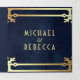 Blue Gold Art Deco Foto Collage Wedding Dreifach Gefaltete Einladung