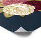 Elegantes Begrüßungsschild in blau und goldfarben mit Alabaster-, Rost- und Burggraben-Rose im Foto.