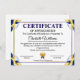 Blue Gold Certificate of Appreciation Template Begleitkarte