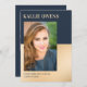 Personalisierte Marine Blue und Gold Class von 2024 Abschluss Ankündigung Foto Flachkarte. Personalisiert mit 2 Fotos, dem Namen des Absolventen, dem Namen der Schule und dem Jahr des Abschlusses. Die Note auf der Rückseite kann über die Leistungen Ihres Absolventen in der High School und/oder ihre Pläne für die Zukunft sprechen. Es kann Informationen über die Abschluss-Zeremonie oder eine Einladung zu Ihrer Abschlussfeier enthalten.