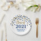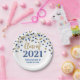 Maßgeschneiderte Graduiertenpartyklasse von 2021 Tellern in glamourösem Gold und blauen Konfetti-Mustern und elegantem handgeschriebenem Styletext.