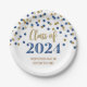 Individuell anpassbare Graduierungsparty-Klasse von 2024 Tellern in glamourösem Gold und Blau Konfetti-Muster und eleganten handgeschriebenen Stil Text.