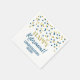 Happy Pension Servietten mit dunkelmarineblau und goldblauen Glitzer Konfetti Muster.
