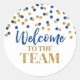 Blue Gold Confetti Willkommen im Team Runder Aufkleber