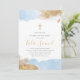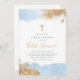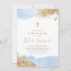 Eine moderne blaue Aquarell und Imitate Gold Glitzer Taufe Einladung. Das perfekte Design für Ihre kleinen Jungs, die taufen oder taufen.