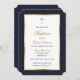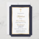 Blue Gold Cross Polka Dots Elegante Script Taufe Einladung