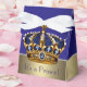 Elegante königsblaue und goldene Prinzkronendusche begünstigen Boxen. Diese wunderschönen blauen und goldenen Duschboxen für Prinzen können mit Text personalisiert werden und Sie können die Farbbandfarbe ändern.