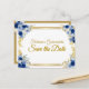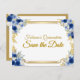 Blue & Gold Floral Save the Date Ankündigungspostkarte