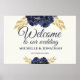 Blue Gold Floral Wedding Begrüßungszeichen 30x20 Poster