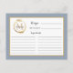 Blue Gold Foliage Monogram Rezept Card Postkarte