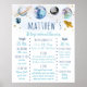 Herzlich willkommen bei Ihren Party mit einem personalisierten Schild. Zeichnen Sie das Schild auf einen Tisch in der Nähe des Eingangs, oder befestigen Sie das Poster auf Schaum und zeigen Sie es draußen auf einem Aal an. Dieses niedliche Design zeichnet sich durch farbenfrohe Planeten mit Imitaten goldenen Sternen aus.