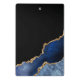 Eine elegante, blaue Agate-Geode mit goldenen Glitzer-Adern auf einer Zwischenablage. Ein stilvolles Monogramm für Ihre Zuhause- oder Bürodekoration.
