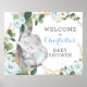 Blue Gold Greenery Elephant Wild One Baby Willkomm Poster