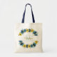 Hier ist eine hübsche personalisierte Tasche, die für jede Jahreszeit geeignet ist. Ihr Monogramm und Ihr Name in Blau und Gold steht im Zentrum, während der Blumenkranz in Aquarellfarben von hinten flüchtige Blick. Beide Seiten der Tasche haben das gleiche Bild und Text.