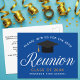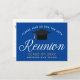 Eine klassische Wiedersehen-Party Einladung-Postkarte in königsblau und goldblau für eine High School, Uni oder Universität. Anpassen mit Ihrem Schulnamen und schließ-Klasse unter der eleganten Kalligrafie für große personalisierte Alumni-Feiern laden Postkarten ein.