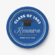 Eine klassische Wiedersehen-Party-Papiertafel in klassischem Königsblau und Gold für eine High School, Uni oder Universität. Passen Sie mit Ihrem Schulnamen und schließ-Klasse unter der eleganten Kalligrafie für eine großartige personalisierte Alumni Feier Dekoration an.