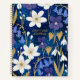 Blue & Gold Illustrierte Blumendankenszeitschrift Notizbuch