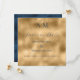 Schöne Braut & Bräutigam Monogramme am oberen Ende dieser schönen Hochzeit Speichern Sie die Date-Karte. Imitate goldener Hintergrund mit tiefblauem Schriftart zu koordinieren mit dem bedrückten blauen Rücken dieser eleganten Einladung. Absolut atemberaubend.