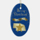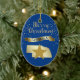 Schicken Sie ihnen etwas hübsches vom großen Staat Nebraska! An der Vorderseite dieses Ornaments befindet sich ein glänzendes goldfarbenes Silhouette-Bild des Staat mit einem dunkleren goldenen Stern. Über dem Staat und Sternbild ist die glitzernde Nachricht MERRY CHRISTMAS in Skript, und ein Banner mit dem Text in blau NEBRASKA. Um das Ganze herum gibt es goldene Schneeflocken. Die Bilder und der Text werden auf einem tiefblauen Hintergrund platziert. Auf der Rückseite des Ornaments befinden sich Textfelder in hellem Gold, die Sie anpassen können, und ein zweites goldenes Sternbild. Sie können die Hintergrundfarbe ändern, wenn Sie möchten, indem Sie CUSTOMIZE wählen.