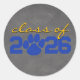 Blue & Gold Pawprint Light Chalkboard Abschluss Runder Aufkleber