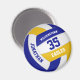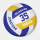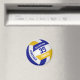 Dieser Volleyball-Magnet mit benutzerdefinierten Teamfarben zeichnet sich durch das realistische Bild eines Volleyballs aus, mit blauen, goldenen und weißen Panels, auf denen Sie den Namen und die Trikot-Nummer des Spielers sowie den Namen der Schule oder des Clubs und des Maskottchens in einem Schriftart im Stil eines Buchstaben anpassen können - von katz_d_zynes