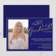 Blue Gold Script Photo Graduation Party Invite Einladung