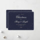 Elegante blaue und goldene Urlaubskarte mit kleinen Sternen auf blauem Hintergrund. Personalisieren Sie diese lila Urlaubskarte einfach mit Ihrem Familiennamen und dem Jahr oder fügen Sie auf der Kartenrückseite einen zusätzlichen Text hinzu.