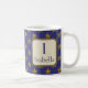 Diese Monogramm-Tasse ist eine großartige Möglichkeit, Ihrer Morgenroutine eine farbenfrohe Touch hinzuzufügen. Auf beiden Seiten dieser Tasse erscheint ein goldenes Sternmuster vor blauem Hintergrund. Der Buchstabe "I" wird zusammen mit Ihrem Namen in einem Quadrat angezeigt. Der Buchstabe und Ihr Name können schnell und einfach personalisiert werden. Original Design - C. McGouldrick