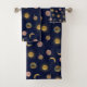 Blue Gold Sun Moon Planets Space Illustration Badhandtuch Set
