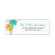 Moderne aquamarine tropische Rücksendeadressen-Aufkleber in Blau und Grün. Das Design umfasst Aquarellpalmen, goldene Glitzer-Saitenleuchten und Wirbel. Designs sind flache gedruckte Illustrationen/Grafiken - NICHT AKTUELLER GLITZER.