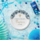 Blauer monochromatischer Aquarell-Blumenstrauß bedeckt das Oberteil dieses Designs mit einem Imitat goldfarbenes, aufwändiges Kreuz und dem Wort "Taufe". Fügen Sie einfach den Namen und das Taufdatum Ihres Kindes hinzu. Composite Design von Holiday Hearts Designs (Rechte vorbehalten).