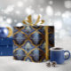 Wenn Sie sich fragen, welche Farbkombinationen Sie für Ihre Weihnachtsdekoration und Geschenkartikel in diesem Jahr auswählen sollten, habe ich Sammlungen von aufeinander abgestimmten Mustern erstellt, um das Leben ein wenig leichter zu machen. Dieses elegante geometrische Design im verzierten Barockstil zeigt sich hier in einer auffallend blauen und goldenen Farbpalette. Suchen Sie die ID1009, um weitere Produkte und Muster in diesem Farbschema zu sehen.